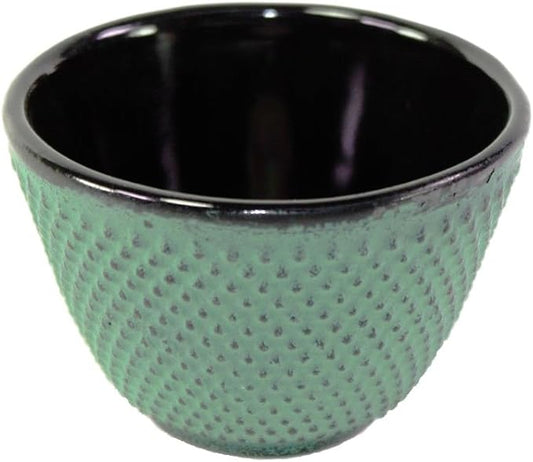 4 Green Leaf Teacup Saucer+4 Dark Blue Polka Dot Hobnail Japanese Cast Iron Tea Cup