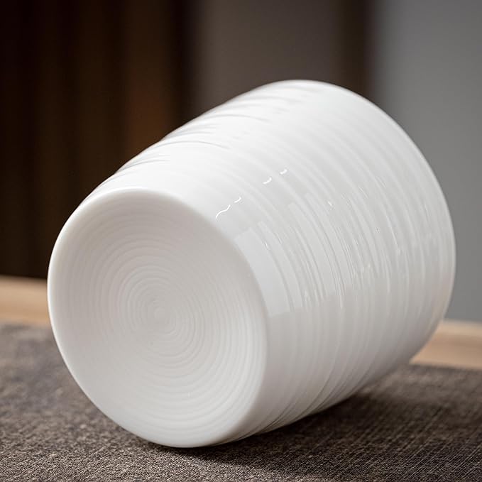 - šµ ELEGANT DESIGN - The hand-carved random thread lines on the exterior provide a comfortable grip, while transparent glaze the smooth interior design makes it easy to clean. The transparent glaze is perfect for tasting and pairing different types of tea, since it was easy to show the tea soup color itself. Which making it a perfect choice for Teahouse, Restaurant & entertaining family and friends & .